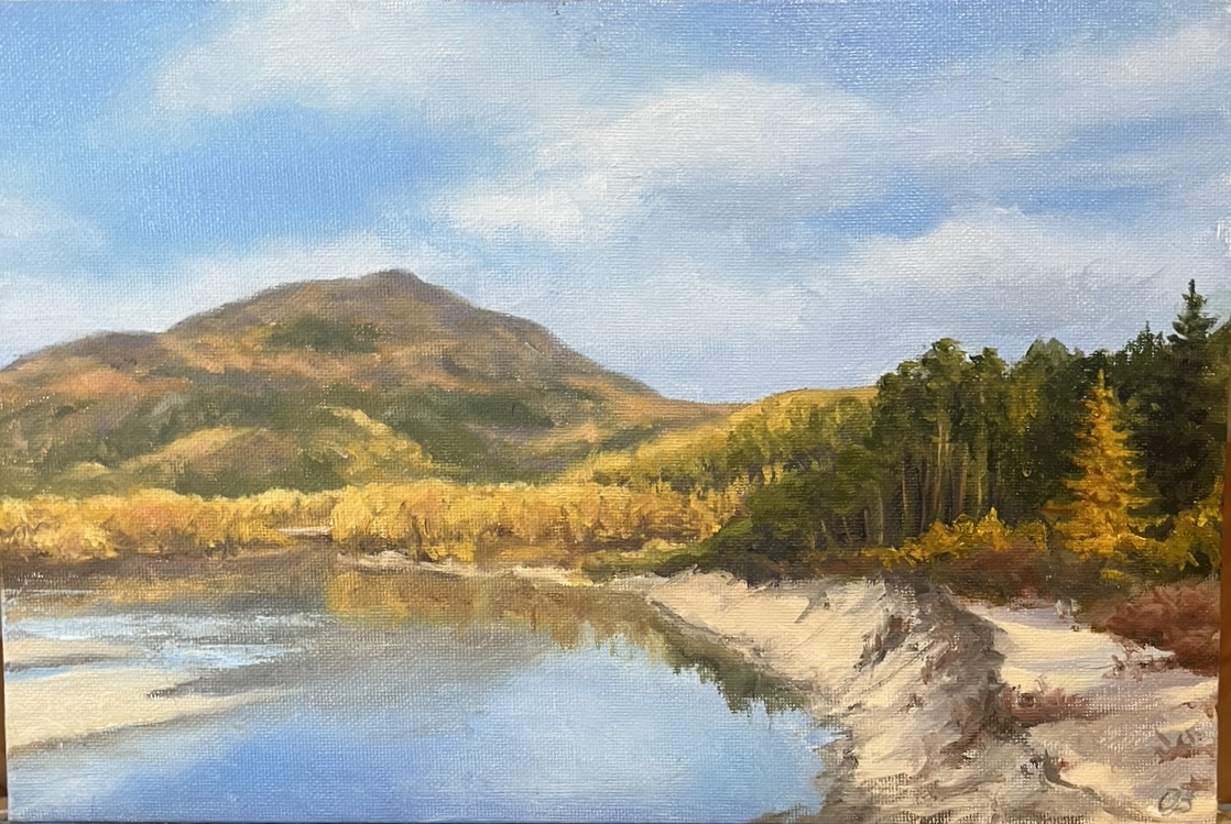 БЕРЕГ РЕКИ МАНА масло, холст, 20*30, 2022г.